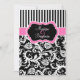 Este as listras preto e branco modernas com convite floral do casamento tema damasco têm acentos do rosa nele. O texto e o tipo de papel são customizáveis. O **** certifica-se POR FAVOR de que todo o texto está centrado e feito sob medida exatamente onde você o quer, porque imprimirá para fora exatamente a maneira você vê-a em seu monitor. Eu não o verei, e Zazzle não editará qualquer coisa, assim que se você precisa a ajuda, envia-me por correio electrónico por favor ANTES QUE você coloque sua ordem. Se você exige quaisquer artigos de harmonização, envie por correio electrónico por favor seu pedido a niteowlstudio@gmail.com.