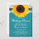 Do casal rústico do país do girassol da cerceta modelo do convite do chá de casamento. Este anúncio original do chá de casamento caracteriza o fundo azul afligido do aqua da cerceta em ambos os lados do convite. O convite tem um enfeite impresso do laço e o enfeite da guita. Sobre isso estão um girassol, uma parte dianteira e um centro amarelos brilhantes na parte superior do convite. O laço e a guita são apenas design impresso. Não é laço ou guita real.