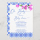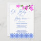 Oh bebê chá de fraldas azul francês bougainvillea convite modelo instantâneo, azulejos mediterrânicos azuis, roteiro casual azul moderno, convite azul e rosa.