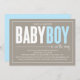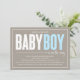 Características deste design a palavra "bebê" no branco e no "menino" no azul em letras de bloco modernas