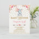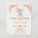 Convite floral cor-de-rosa e Dourado do chá de fraldas do elefante de Boho
