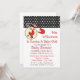 Um convite do chá de fraldas para os professores que caracterizam uma beira superior de bolinhas brancas pequenas sobre o preto com guarnição vermelha. O pino vermelho da fralda unido à beira superior e o círculo dão forma com carruagem de bebê vermelha da maçã para dentro. Personalize o texto vermelho e preto com detalhes de sua ocasião.