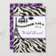 Um design lunático e do divertimento usando o impressão da zebra em uns lado e leopardo imprime no outro! Há candelabros franceses antigos e a torre Eiffel com as palavras, de "lala Ooooooh, é um chá de panela!" O trabalho de arte usado para criar este convite era pintado mão por Audrey Jeanne Roberts. Disponível em uma vasta gama de paletas de cores brilhantes, este é lavanda, roxo, cinza e preto. VOCÊ PÔDE IGUALMENTE APRECIAR: