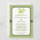 Chá de panela de travamento moderno e do olho. Excelente para um evento que comemora ambos os noivos. Características duas peras que sobrepor um bocado nas cores transparentes que jogam em cima do tema "par perfeito". Um fundo ornamentado do quadro e do teste padrão da beira termina o olhar atraente deste convite. Ideal para um casal moderno que comemora o amor e o começo de uma vida nova junto.