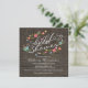Convites florais de madeira rústicos do chá de casamento da grinalda - chá de panela floral do jardim. Um buquê do país colorido floresce com rosas cor-de-rosa, margaridas amarelas, acentos encantadores no azul e coral, com tipografia extravagante elegante do redemoinho no fundo velho resistido da madeira do celeiro. Apenas adicione o nome Noiva-à-Estar, da data, de tempo e de detalhes, e personalize a informação nupcial do registro. O clique personaliza-a para mudar o tamanho, denomina-a, ou disposição e criar-la seus próprios convites disponíveis do chá de casamento. © junho de 2013. Este produto é uma criação original pela loja de WeddingTrendy. Todos os trabalhos artísticos originais e elementos comercialmente licenciados do design são protegidos por E.U. e por leis de direitos de autor internacionais e não podem ser reproduzidos ou publicado sem permissão ou acordo prévio pelos artistas originais e/ou por seus agentes licenciando.