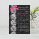 Este convite elegante e sofisticado nupcial ou do chá de casamento tem um tom no preto do tom e o fundo floral cinzento do teste padrão com falso branco prateado um design textured do laço nele e um rosa fúcsia quente IMPRESSO no arco que seria perfeito para um chá da lingerie. O texto e o papel são toda customizáveis. Mostra-se aqui no papel básico. Eu não usaria o ouro metálico, ou o papel de prata como ambos severamente escurecerão/alteram a cor do cartão. O *** NOTA POR FAVOR que se você muda a pia batismal ou o tamanho da pia batismal, ele pode alterar-se como seu convite imprime. Imprimirá a maneira que você a vê em seu monitor, assim que se você tem edições do alinhamento, ou problemas da cola, contacta-me por favor para a ajuda antes que você peça. Eu não verei seu convite uma vez que você o pede, e Zazzle não editará qualquer coisa (erros tipográficos, alinhamento, etc.). Se você exige o auxílio ou gostaria de quaisquer outros artigos de harmonização, para enviar por correio electrónico por favor seu pedido a niteowlstudio@gmail.com.