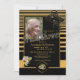 Uma luxuosa textura de seda dourada esparramada através de dois anéis de casamento sobre um fundo preto dramático com uma faixa de estilo Deco para dar ao design um chic e um olhar glamouroso para personalizar com uma foto da noiva