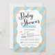 Convite do chá do bebé do brilho Dourado & das listras azuis