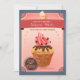 Um convite versátil que possa ser usado para um bebê polvilha, chá de panela ou como um convite de aniversário. O cupcake devista tem o chuvisco do chocolate e polvilha-o e um dollop cor-de-rosa do chantiliy. O fundo é um ponto luminoso cor-de-rosa sobre cinzas com uma bandeira da baga e uns cantos decorativos. (FP)
