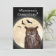 Uma coruja excelente corada em frente à lua de cheio e ao céu noturno estrelado. Arte original do artista da vida selvagem Crista S. Forest.