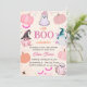 Rapariga Halloween Um Pequeno Convite De Chá de fraldas De Fantasma Boo Apresentando nosso Encantado Convite De Chá de fraldas De Tema De Halloween, onde abóboras adoráveis, chapéus de bruxas caprichosas, fantasmas amigáveis, poções mágicas, e um borrão de estrelas se reúnem para criar uma celebração inesquecível!