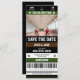 Apresentando o nosso Cartão de Bilhete de Futebol "Salve a Data" - a maneira perfeita de começar sua celebração de casamento em estilo! Este cartão único foi concebido para se assemelhar a um bilhete de futebol genuíno e irá encantar os seus amigos e familiares com o seu charme lúdico e nostálgico. A tipografia ousada e as cores que chamam a atenção dão um tom ao entusiasmo e à energia de um grande jogo, enquanto os detalhes do tema do futebol adicionam um toque de diversão e humor ao seu anúncio especial. Com espaço para todos os detalhes importantes do seu grande dia, este cartão de ingresso de futebol é a maneira perfeita de levar seus convidados para cima e prontos para animá-lo!