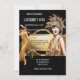 Um quadro horizontal com estilo de deco de arte dourada falsa ornamentado tem um modelo preto assente nele e é enquadrado por um fundo preto no qual aparecem modelos brancos para a sua redação personalizada. À esquerda do quadro do ouro está uma garota flapper vestindo um vestido de ouro falso de franja longa e uma pulseira com uma pena nela. Ela está fazendo uma pose e sua mão está apontando para o endereço do local no quadro. À direita da armação está a cabeça e o peito de uma linda menina Flapper morena com um pequeno sorriso no rosto. Ela está vestindo um vestido esfarrapado de ouro, sem fita, com longos bordos ouros e uma faixa de cabeceira adornada com penas castanhas e pretas. O design é adequado para uma comemoração de vinte anos; década de 1920; Gatsby excelente; vintage art deco temed evento ou celebração. São perfeitos para uso profissional e pessoal.