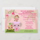 Um convite Bonito de chá de fraldas cinza tropical, cor-de-rosa, com um bobo de macaquinha doce, um elefante, um tigre e um sapo/sapo rodeados por bonito tons de rosa e roxo, assim como flores. Este convite para chás de fraldas coordena-se com muitos dos atuais conjuntos populares de camas de berçário, em particular a coleção de velas de Blossom. Isso também vai combinar com muitas outras garotas da selva de macacos. As bandeiras coloridas de pennant exibem "É uma garota!" (Design nº: ISMO-0132)