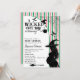 Cute Baby Wicked está criando um convite para Chá de fraldas de bruxas grávidas - Um convite para chás de fraldas bonito, divertido e inspirado em cores modernas, rosa e verde, com listras. Perfeito para um chá de fraldas temático de bruxa, brunch de bebê bruxa ou mosquiteiro de Halloween. Apresentando uma bruxa esperançosa com chapéu preto de bruxa, juntamente com ícones clássicos de bruxa como um caldeirão preto, morcegos assustadores, teias de aranha e uma vassoura-bruxa. A inscrição retroativa adiciona à vibração assustadora. Celebrar um chá de fraldas mágico e perverso com este chá de fraldas editável. Disponível para impressões ou como um modelo digital, envie-o através de texto ou mídia social.