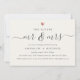 Este convite mínimo de festas de noivado brilha através da sua simplicidade. Belo roteiro com elogios lê "O Futuro Sr. e Sra." ao lado de seus detalhes pessoais de celebração na tipografia moderna. Acima, está um delicado coração de rosa de ouro falso.