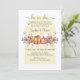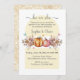 Experimente o encantamento do nosso adorável design de aquarela com duas abóboras cercadas por flores delicadas. Esta bela e super fofa trabalho de arte traz capricho e charme ao seu gênero de bebê revela convites de festas.