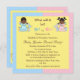O género personalizado adorável do bebê revela convites do chá de fraldas do partido com os bebês bonitos do afro-americano em um fundo amarelo com um cor-de-rosa bonito e no azul com quadro branco dos pontos. O texto é inteiramente customizável encontrar suas necessidades e os objetos do design podem ser movidos e re-feito sob medida. Os convites são ilustrados em ambos os lados. www.resaleclipart.
