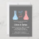 O género do coelho revela características do convite de festas a parte traseira de um coelho azul bonito e de um coelho cor-de-rosa bonito contra um fundo cinzento escuro. Manhã 6 do ©
