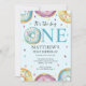 Comece com estilo as celebrações de festas de primeiro aniversario 'Grande' da sua pequena, com este convite de festas inspirado na rosquinha. O convite pode ser personalizado para incluir o nome e os detalhes da sua pequena festa. Este convite está em azul - uma cor tradicional para um menino. Ideal para qualquer época do ano, porque as rosquinhas são relevantes durante todo o ano.