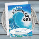 O convite para o primeiro aniversario do tema Oceano com grande onda azul de surfe, escrito com "[name] está transformando o grande" em uma tipografia retrô arrojada. O modelo está pronto para você personalizar os detalhes do convite, que no momento leu "pegar uma onda e parar para comemorar o primeiro aniversario dele..." e você pode editá-lo como quiser. O design tem uma paleta colorida em tons de turquesa, azul e verde oceânico. Por favor, procure na minha loja mais temas oceânicos, surfs e bebês em convites estilo conselho.