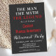 Celebre a sua lenda de bombeiro Chamadas de Reforma de Bombeiros. Celebre anos de serviço dedicado e convide amigos e familiares para a sua festa de aposentadoria de bombeiros com este Convite à aposentadoria de bombeiros. Design preto moderno branco e vermelho em couro de cinza de carvão. Veja a nossa coleção de presentes de aposentadoria de bombeiros, favoritos para festas de aposentadoria de bombeiros e suprimentos. COPYRIGHT © 2021 Judy Burrows, Black Dog Art - Todos Os Direitos Reservados. O Homem Mite O Convite À Reforma Do Bombeiro Da Lenda