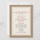 Um convite rústico do jantar de ensaio do casamento que caracteriza uma ilustração da parte traseira vermelha e branca e da parte dianteira listradas da guita do cozimento sobre amarradas em um arco. A serapilheira e o laço das características da parte dianteira inspiraram o fundo. Personalize o texto com detalhes de sua ocasião.