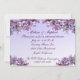 Os Lilacs são o tema deste convite do jantar de ensaio do casamento. A parte dianteira caracteriza pulverizadores cor-de-rosa e malva do lilac em um fundo roxo. A parte traseira tem mais flores. Personalize o texto para sua ocasião especial.