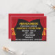 Esse convite de festas de apresentação mágica personalizável apresenta um palco com cortinas vermelhas brilhantes e timbacks dourados com tarefas e texto personalizável.
