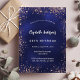Um convite moderno, na moda e glamouroso para uma festa de aniversário 40ª (ou qualquer idade). Um fundo azul marinho, decorado com brilho azul rosa, brilhos. A cor azul é irregular. Personalize e adicione seu nome e detalhes da festa.