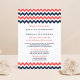 Simples mas elegante, a coleção moderna de casamentos de chevron é um design impressionante que apresenta um adorável impressão de zig-zag em uma cor azul, coral e branca marinho, o que é perfeito para qualquer celebração moderna de casamento. Esses convites podem ser personalizados para sua ocasião especial e farão o anúncio perfeito para seu casamento, chá de panela, festa de noivado, festa de aniversário e muitas outras ocasiões especiais. Adicione seu texto personalizado a este design usando as caixas "Editar este modelo design" no lado direito do item, ou clique no botão azul "Personalizar" para organizar o texto, alterar as fontes e cores e também adicionar informações ou imagens adicionais a este design.
