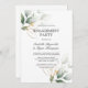 Convites de Elegante e de FESTA DE NOIVADO Trendy com culturas profundas, folhas de sage e de cor de oliveira, folhas, ramos de eucalipto, folhagem - tema do boho botânico. Folha de ouro. Perfeito para qualquer época do ano ou tema do casamento. Design delicado em folhas pintadas de cor d'água. A parte de trás do cartão tem o Sr. e a Sra. Name. Perfeito para o partido do orçamento.