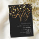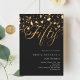 Um convite moderno e na moda para uma 50ª festa de aniversário para ele e para ela. Decorado com estrelas ouros. Fundo preto e a palavra Cinquenta escrita com letras douradas falsas grandes. Personalize e adicione um nome e detalhes da parte.