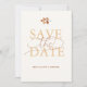 Um pequeno ramo da faia de cobre cai a folhagem em aquarela e um esquema de cor de cobre e ferrugem enfeita este elegante, simples, elegante e moderno casamento fotográfico salvo a data. Apresenta caligrafia moderna e elegante com amplos florescimentos. Luxuoso, mas simples, clássico, mas chique, moderno, mas eterno. Uma escolha encantadora para um casamento no outono com cobre, laranja queimada, terracota, bege, vermelho, laranja e outras matizes de outono.