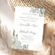 Traga o charme de eterno para o dia especial com este design floral de casamento com marfim e flores brancas de magnólia. Com um toque de verde e detalhes florais de aquarela, ele captura uma estética romântica suave que é elegante e sofisticada. Perfeito para uma celebração inspirada no sul, esta design combina a beleza clássica com o estilo moderno, criando a papelaria ou obra decoradora ideal para o dia do seu casamento.
