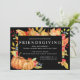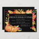 Um modelo de janto de Amizade muito colorido e fácil de personalizar. Uma variedade de folhas ouros amarelas e vermelhas escuras enquadram seus detalhes de Janto de Amizade. Duas abóboras e bagas juntam-se à design festiva do outono. O texto branco sobre preto é realmente pop.
