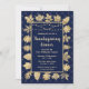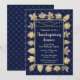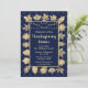 Este elegante e glamouroso convite de festas de janto de ação de graças apresenta folhas de ouro e luzes de fada sobre um fundo de diamante azul marinho. O texto combina o script manuscrito e as fontes sans serif modernas para um aspecto elegante e sofisticado. Os elementos de outono e de outono são perfeitos para as festas de Ação de Graças e de jardim sazonal.