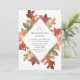 Convide amigos e família para a sua comemoração de Ação de Graças com estas folhas de outono rústicas, convites jantes. A design mostra os detalhes do evento enquadrados em folha de ouro falsa, cercada por folhagem de queda de cor d'água em tons sazonais quentes de marrom, verde, burgundy, ferrugem, amarela, laranja e número queimado. A parte de trás apresenta um fundo de burlagem sólido para um acabamento clássico. Perfeito para jantas de Ação de Graças, reuniões de Amizade ou festas de outono.