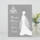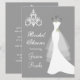 O vestido branco do casamento e o candelabro em um Chá de panela de fundo de cinza. Fácil de personalizar - basta mudar a fonte, a cor, o tamanho e escolher o estilo do papel.