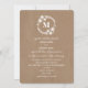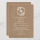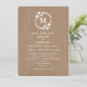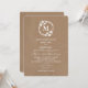 Um convite do casamento do monograma que caracteriza uma ilustração de uma grinalda floral branca na parte superior. Personalize com sua inicial dentro do círculo. Personalize o texto com detalhes de sua ocasião. O fraseio é dos noivos junto com suas famílias. O fundo é papel marrom inspirado.