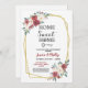 Convite de festas floral de creme vermelho do Housewarming. Mudando sua lista para um Housewarming do CHURRASCO, um anúncio home novo, uma mudança etc. simplesmente o texto para serir seu partido. Impressão traseiro incluído.