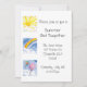 Este o verão legal convida é grande se você está planeando uma reunião do verão com amigos e família. Com três imagens da aguarela no lado de mão esquerda de coisas do verão. ! a rua é um sol, o ò é um arco-íris, e o ó é balões de ar quente que voam no céu.