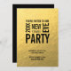 Fundo do papel da folha Dourado do falso - efeito impresso da foto - convite de festas moderno da véspera de ano novo da tipografia preta simples. Design pelo © de Elke Clarke. Para ocasiões de Zazzle.