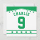 Personalize a parte traseira do convite com sua escolha do nome e do número do jérsei (idade). A parte dianteira do convite é ao estilo de um jérsei do hóquei completo com o colar e o design do laço.