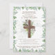 Este elegante convite para aposentadoria do clero apresenta uma cruz floral, um campo personalizável de texto/verso/escritura de Bíblia e campos de texto de convite suficientes para que você adicione a informação necessária para comemorar a aposentadoria de seu padre, pastor, ministro, Deacon, Bishop etc. Greenery deixa o tema.
