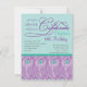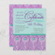 A cerceta e o roxo são as cores principais deste convite glamoroso, moderno. Ilustrado por um cheio lindo do teste padrão de penas do pavão e escrito em pias batismais extravagantes. Ideal para a celebração da festa de aniversário de senhoras da forma.