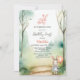 Comemore o primeiro aniversário do seu filho com este convite de Primavera único e encantador. Apresenta uma ilustração de aquarela emocionante de um belo coelhinho de bebê colocado contra um pano de fundo de verde e floresta. O suave e gentil design de aquarela dá um tom calmo, fazer-o a escolha perfeita para uma celebração de aniversário alegre. Use as ferramentas de design para atualizar o texto.