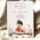 Enfermeira a alegria de crescer com o nosso "Pequeno Convite para o Primeiro Aniversário". Na frente, uma doce ilustração de uma garotinha em um vestido vermelho de poca-dot, tenra água, um jardim vibrante de flores silvestres, simbolizando o crescimento e a beleza natural. A parte de trás é enfeitada com letras brincalhonas, em tons de terra, que se misturam perfeitamente com o tema do jardim branco. O leve pano de fundo de aquarela em bege mole fornece uma canvas de calor, convidando seus convidados a celebrar a primeira jornada do florescimento da vida com a sua pequena.