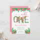 O primeiro convite de aniversário para o seu "selvagem" apresenta flores de hibisco rosa e verde brilhantes, UM padronizado, e um leopardo a perseguir as letras.