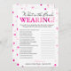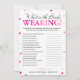 Este moderno O que é o jogo da noiva que veste apresenta um fundo magenta cor-de-rosa com confete metálico. O texto é escrito em uma mistura de uma letra de caligrafia lúdica e uma fonte serif moderna, este cartão é personalizado com o nome do futuro noivo e a data do Chá de panela. POR FAVOR NOTA _____________________________________________________________________________________ A cor metálica não é real, apenas um efeito digital ______________________________________________________________________________________________